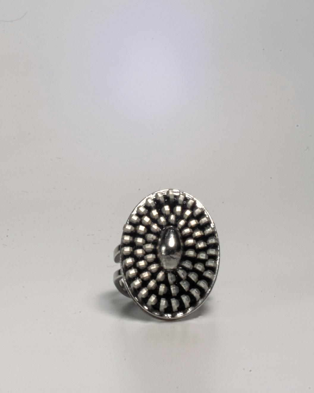Anillo oval hecho con cremalleras y acero .