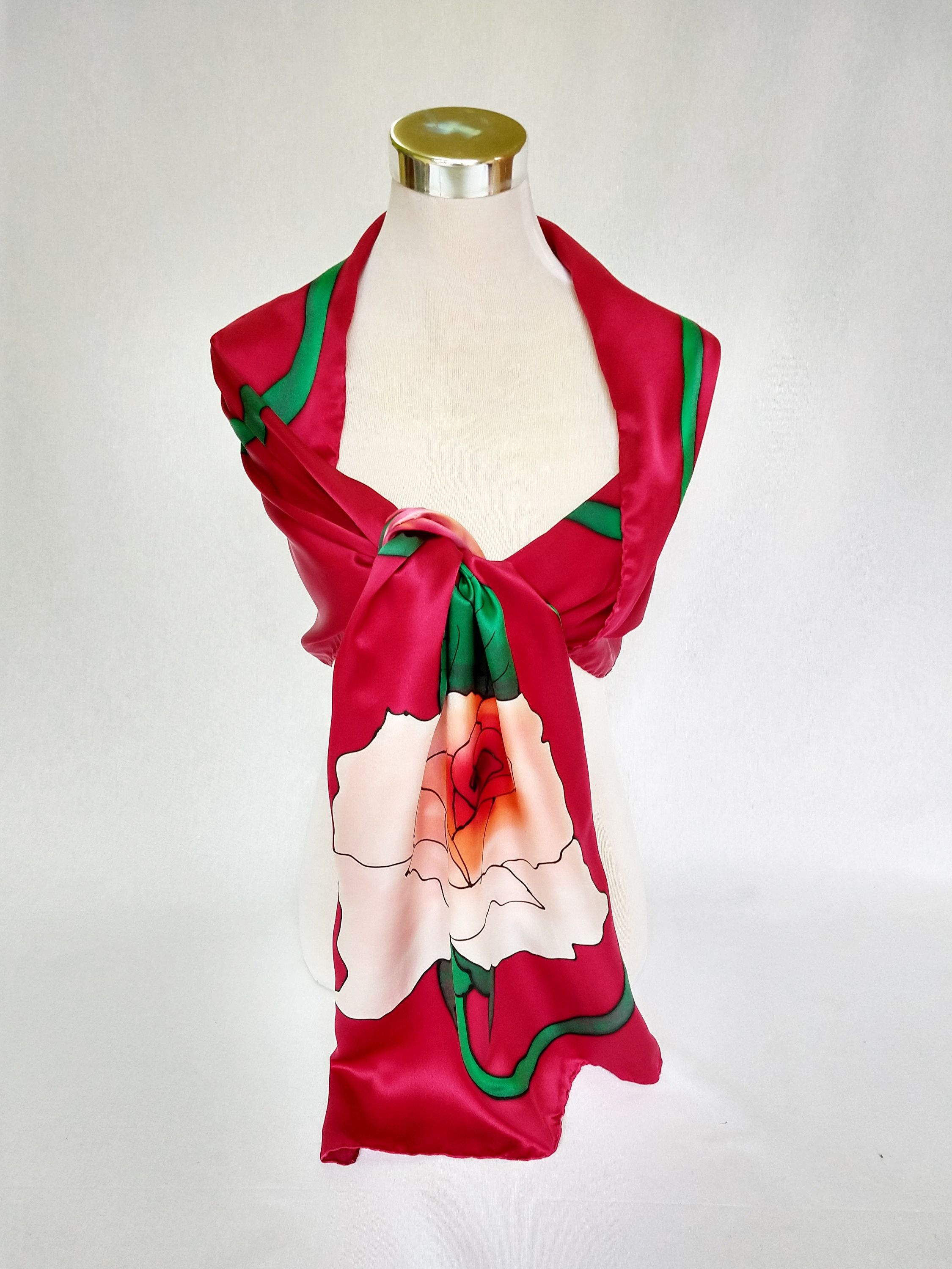 Bufanda de seda con flores para bodas: flores rojas artísticas, declaración de moda de lujo, 18 x 72 pulgadas