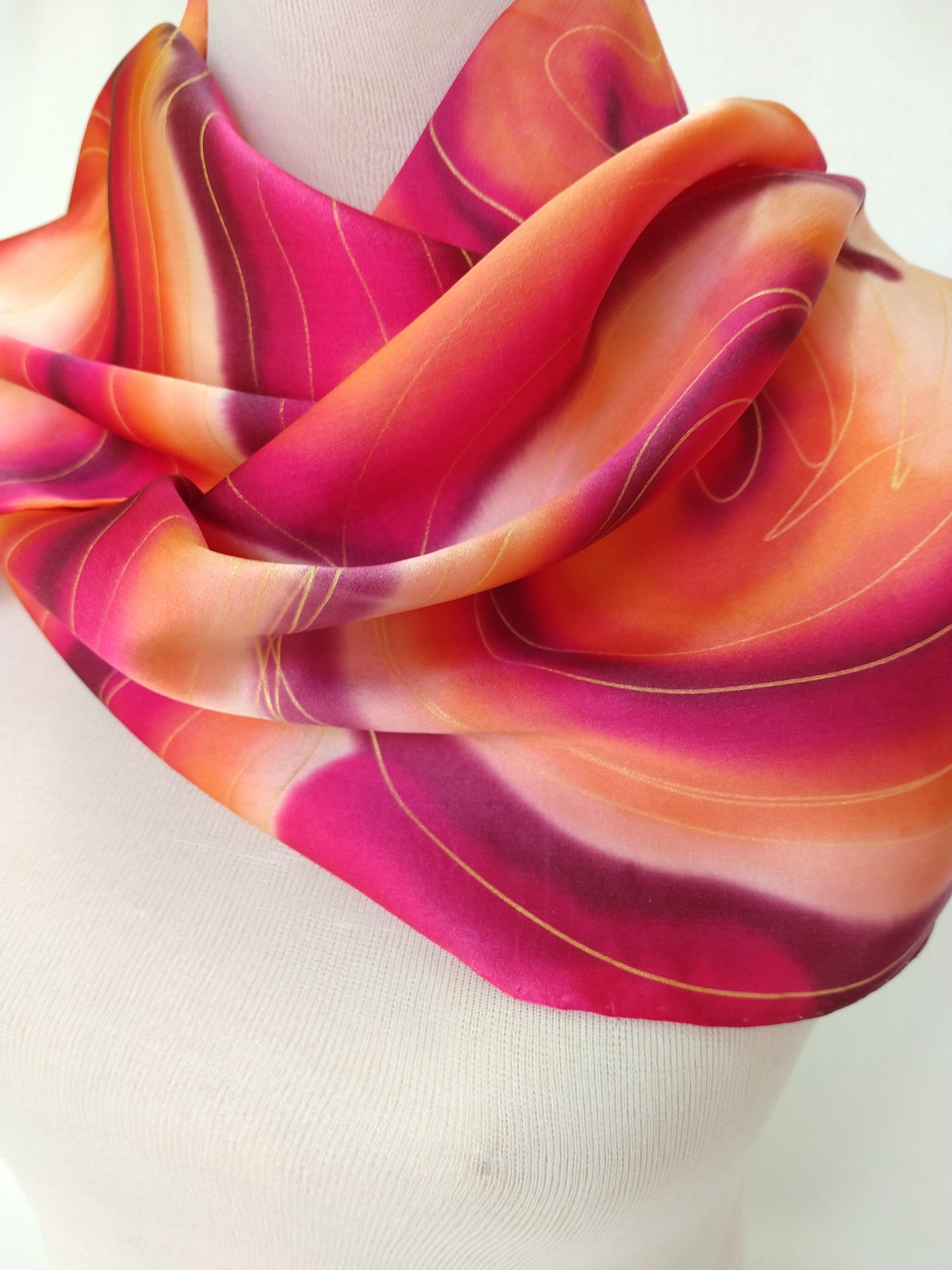 Bufanda de seda satinada roja de lujo para mujeres de negocios: diseño abstracto para estilo y elegancia - 12 x 52 pulgadas