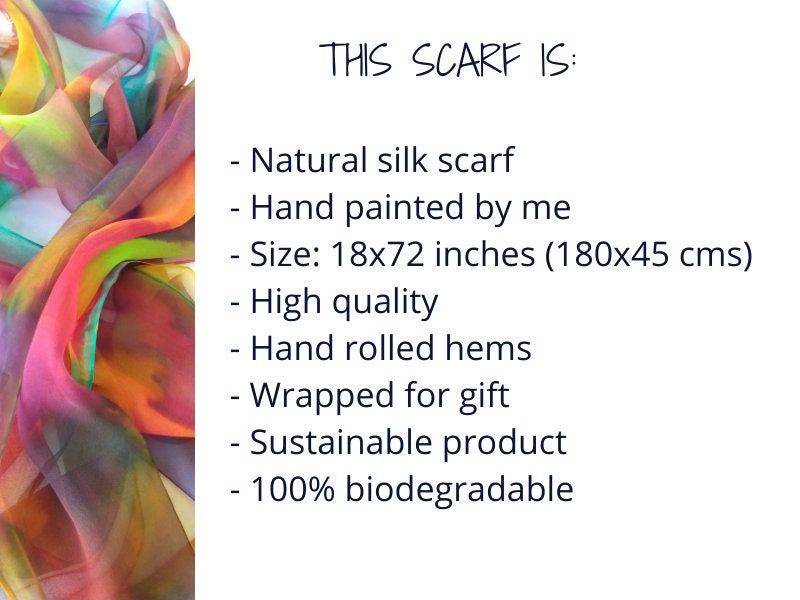 Mis pañuelos de seda natural pintados a mano son increíblemente suaves, ligeros de llevar y añaden un toque de color moderno a cualquier atuendo. Son el accesorio perfecto para un look informal o sofisticado pero divertido, y una forma sencilla de darle un toque elegante a un atuendo para cualquier ocasión: boda, reunión de negocios, cena romántica, vacaciones o una salida nocturna glamurosa.