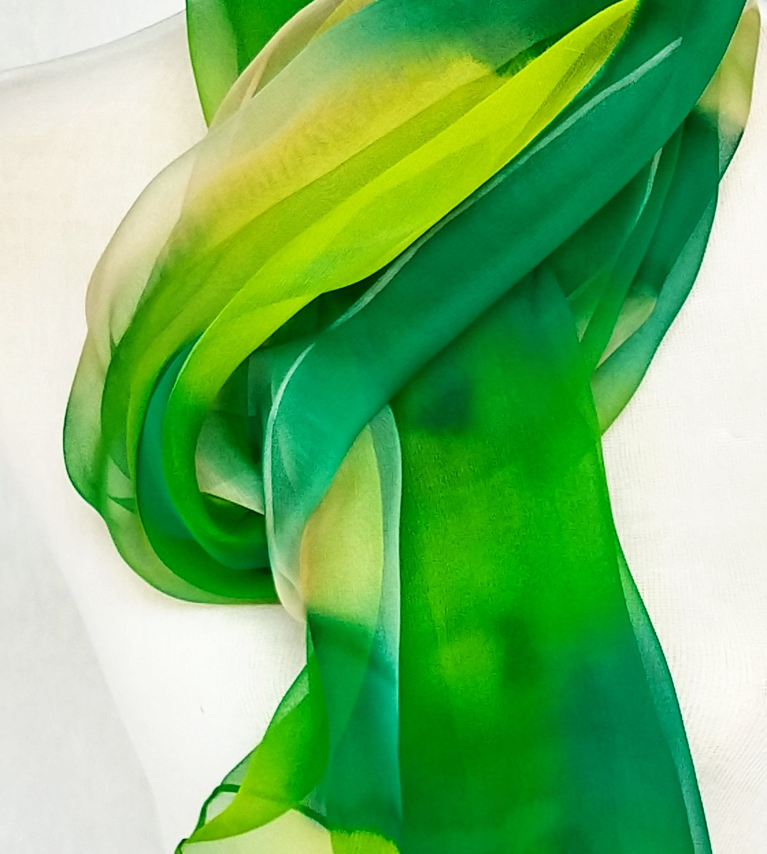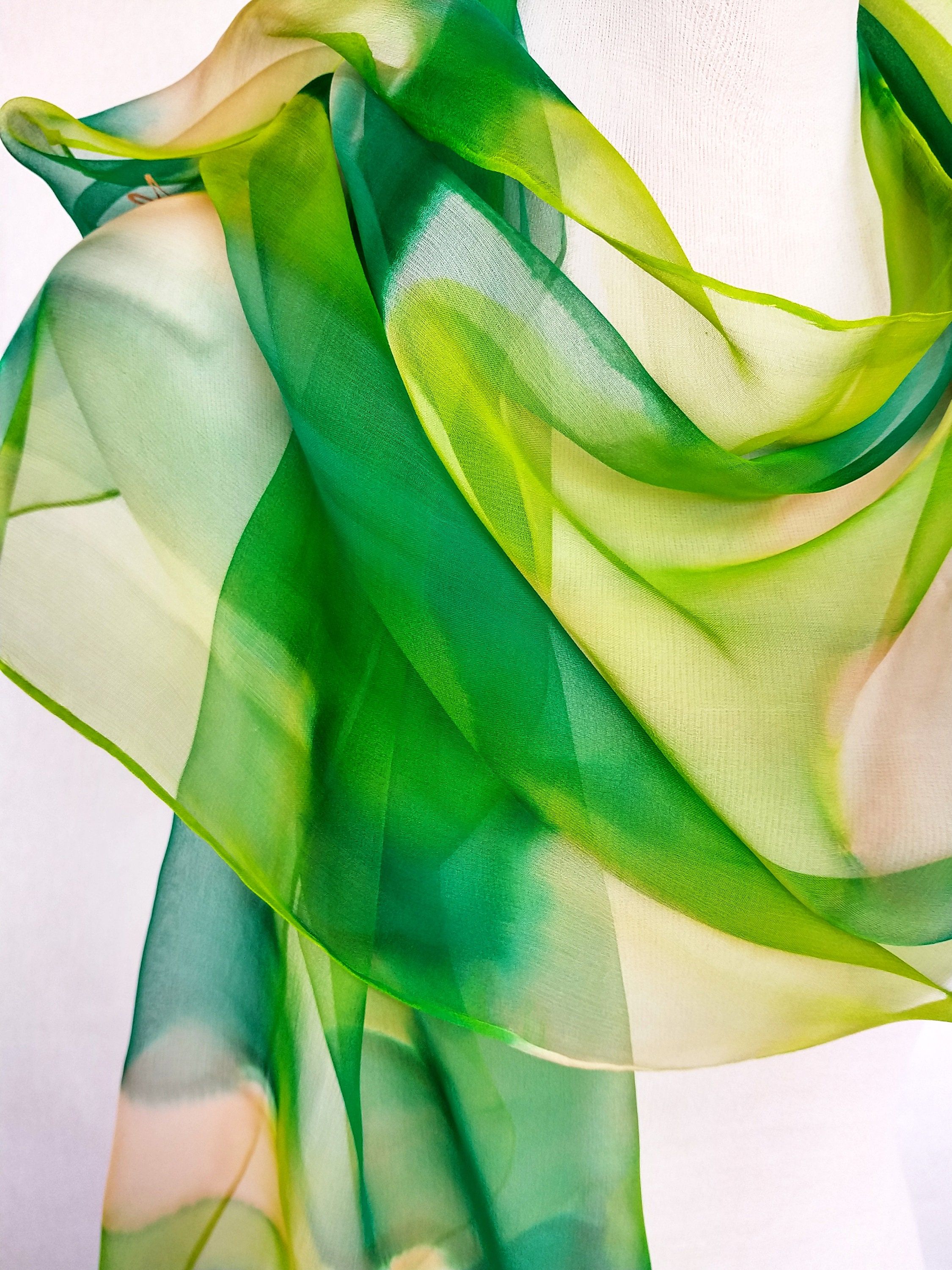 Bufanda verde pintada a mano, chal de gasa para bodas de verano, diseño abstracto, bufanda de seda para eventos formales, envoltura de alta calidad, bufanda elegante