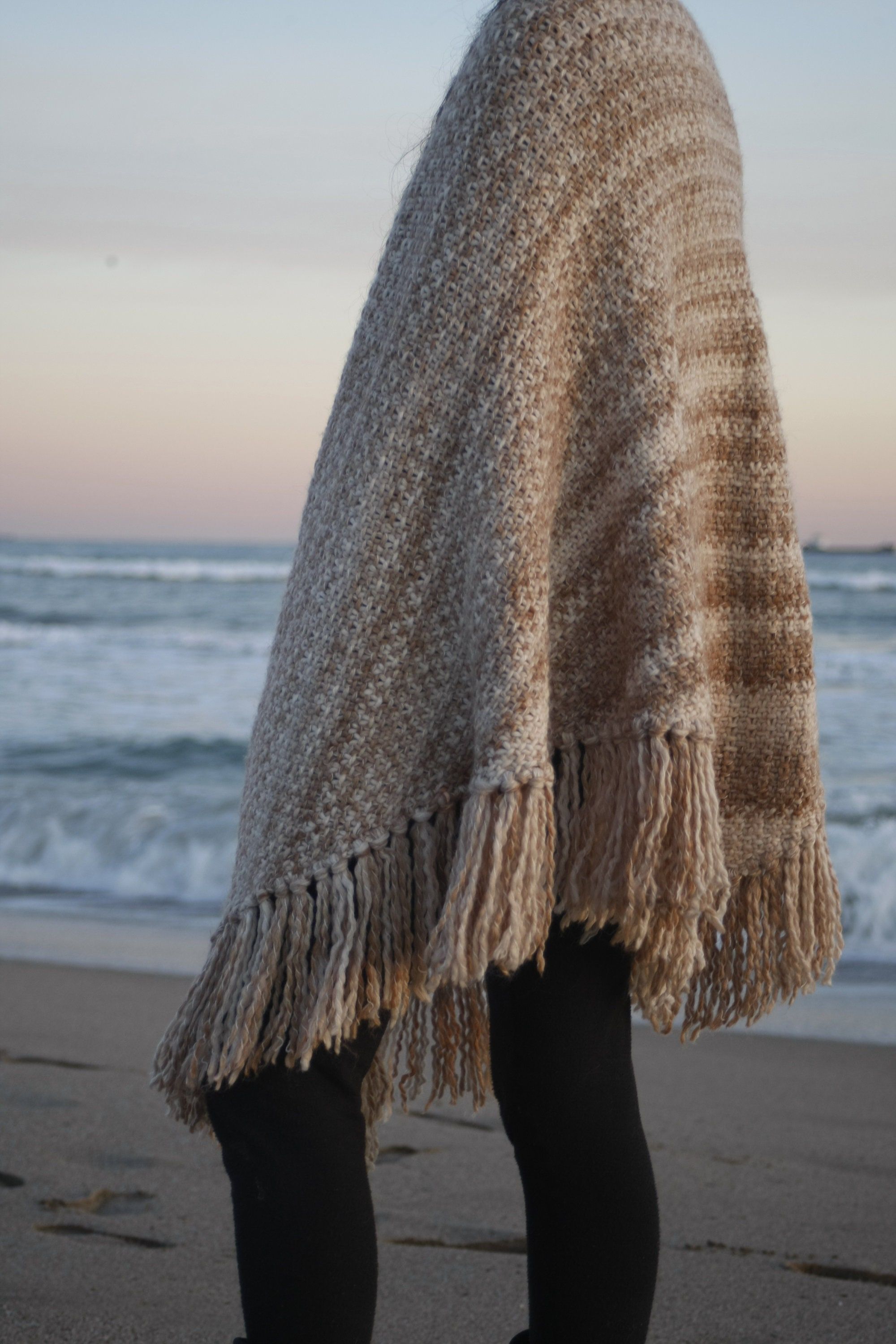 Bellisimo chal envolvente de lana 100% natural en tonalidades de beige en degradee.