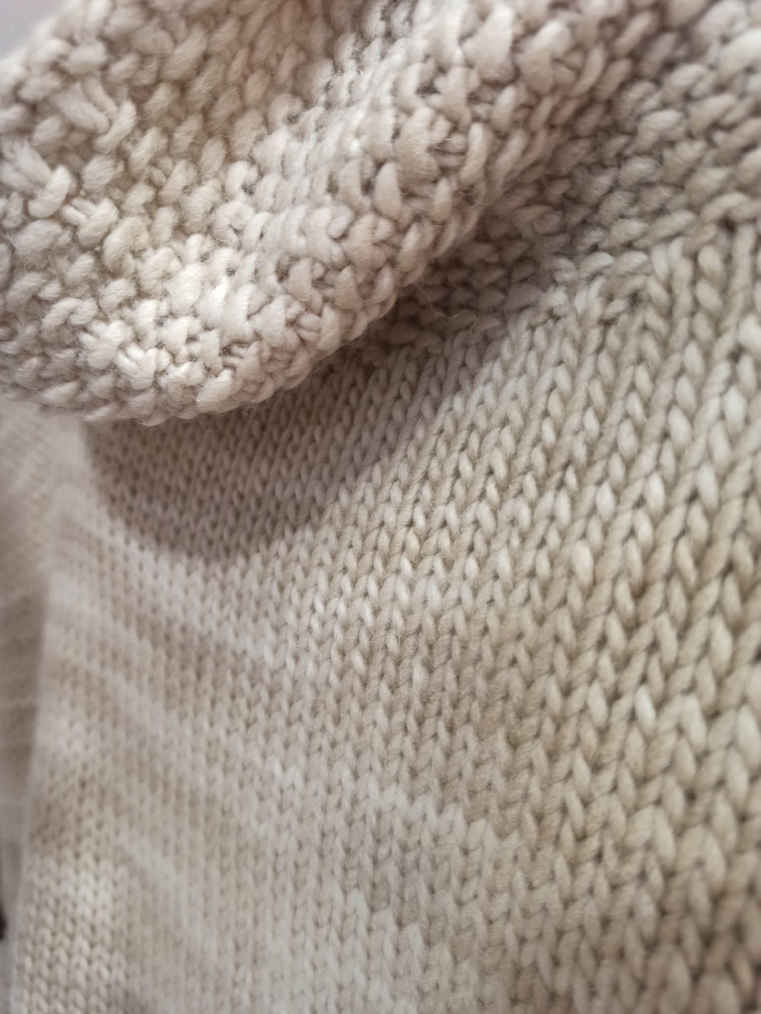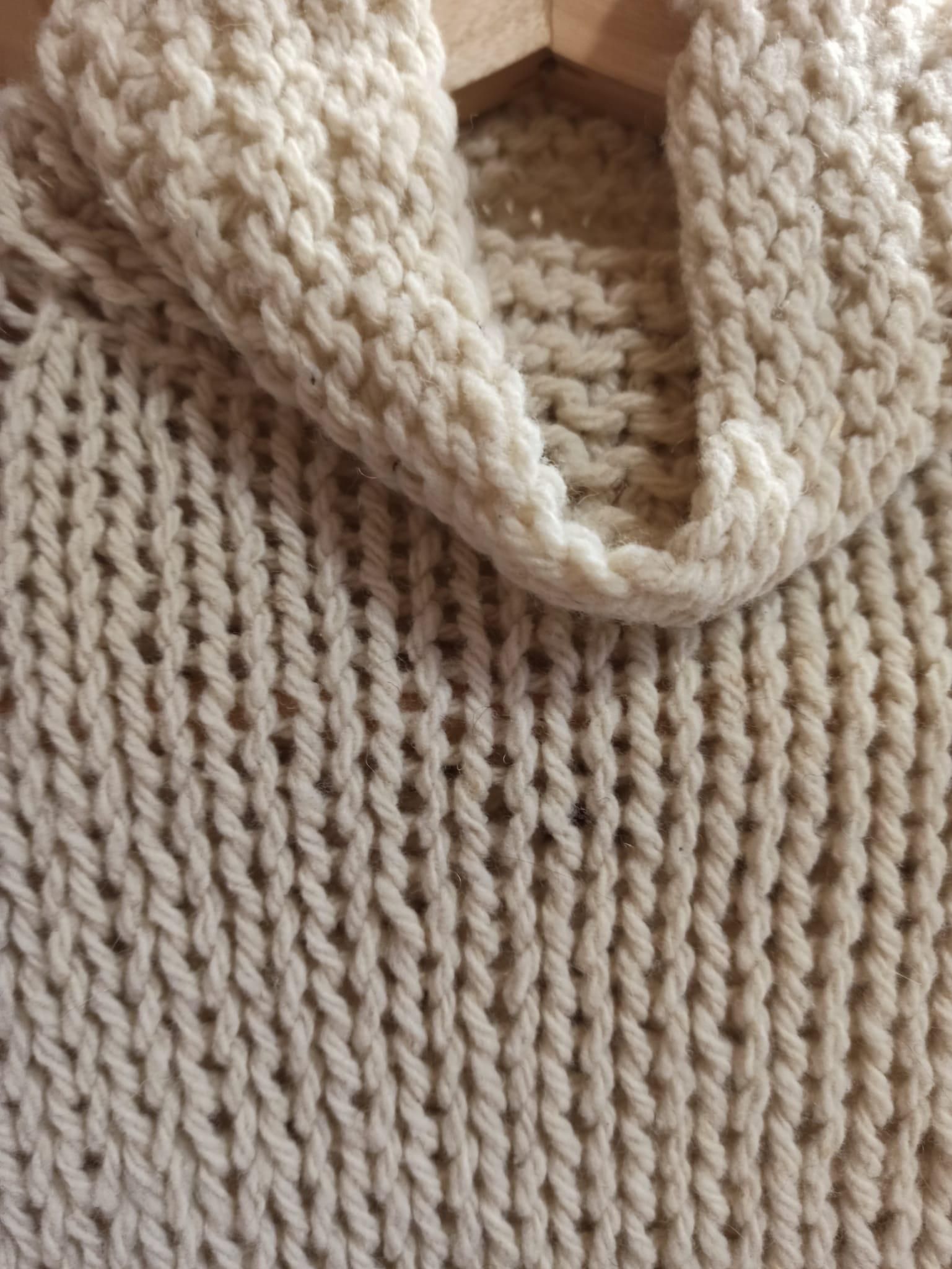 Pieza unica, tejida a mano con lana virgen, procesada respetuosamente con el medio ambiente, tratada con productos naturales, libres de quimico y el origen de la lana es crianza extensible