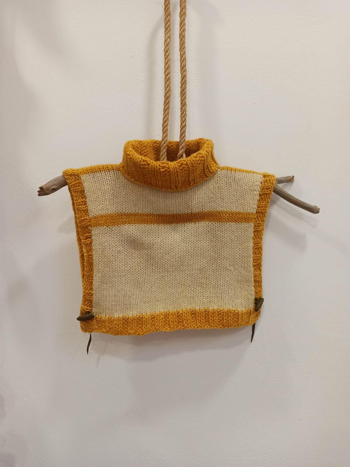 Pechera con cuello de Lana 100% merino de España, prendas tejidas a mano, el teñido artesanal y natural