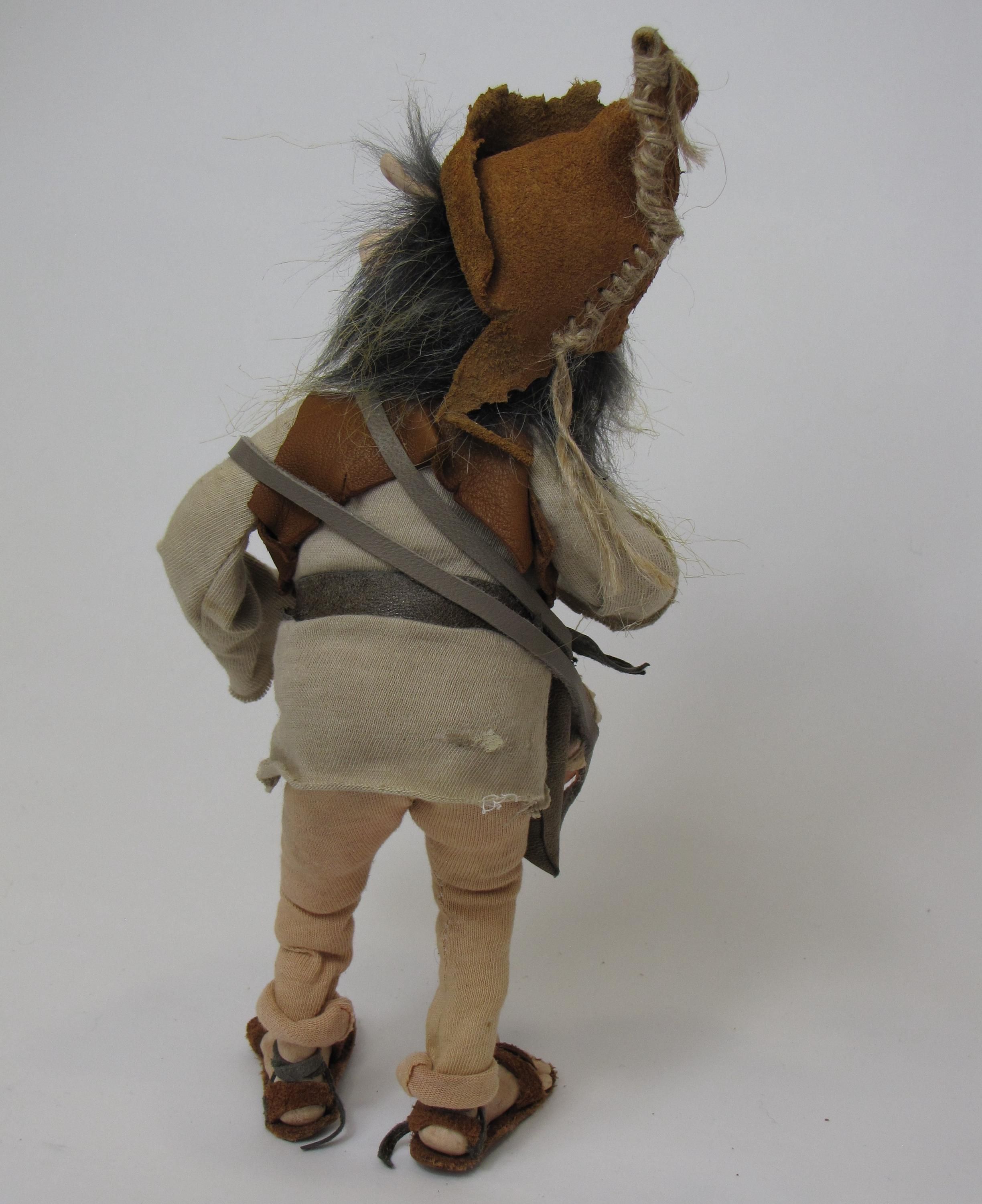 Esta figura esta modelada a mano en papel mache , sus manos y orejas modeladas con arcilla polimerica flexible , lo que le permite tomar los accesorios ,sin ries go de que se quiebren sus deditos