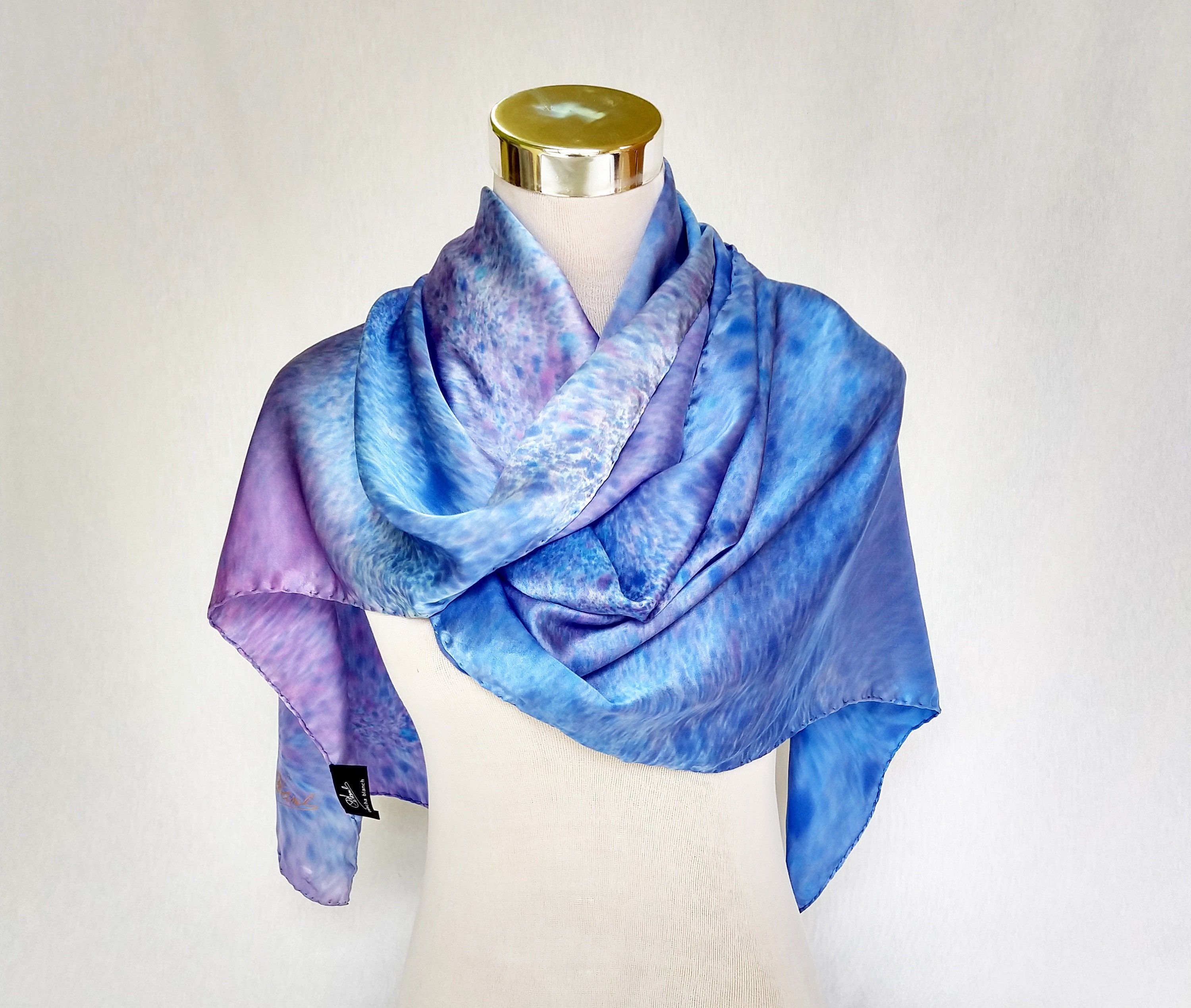 Bufanda de seda pintada a mano en azul verdoso: elegante pañuelo grande / Idea de regalo perfecta para esposa