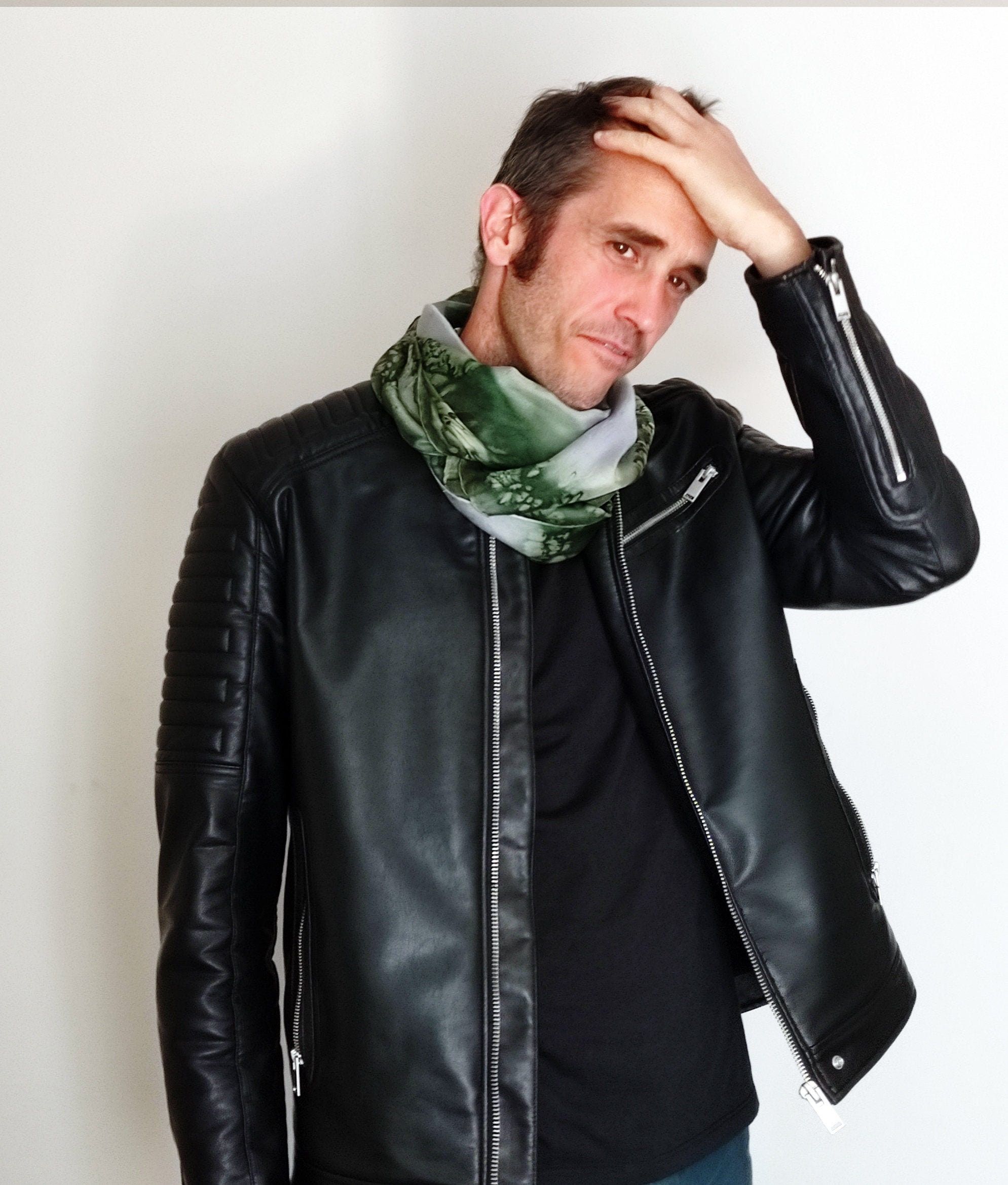 Impresionante bufanda de seda pintada a mano, verde oliva: regalo ideal para hombres: extragrande, elegante y única