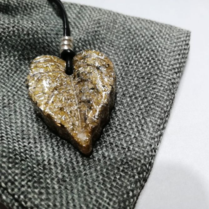 Este modelo de orgonita, es un modelo clásico, su composición es resina de poliéster con virutas de metal (aluminio) en una proporción al 50%, y en su interior una piedra de cuarzo y chips de cuarzo recogidos en la montaña del Montseny, debidamente activados durante 3 noches a la luz de la luna llena y programados debidamente, y chips de Shungita, así como un corazón de hierro en polvo en su interior.