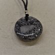 Esta orgonita colgante también puede ser para el bolsillo o para un llavero. Lleva un cordón de cinta de cola de ratón ajustable en altura negro, los abalorios son de plata.