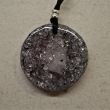 Lleva un cordón de cinta de cola de ratón ajustable en altura negro, los abalorios son de plata y si se solicita puede ser con cuero natural negro.