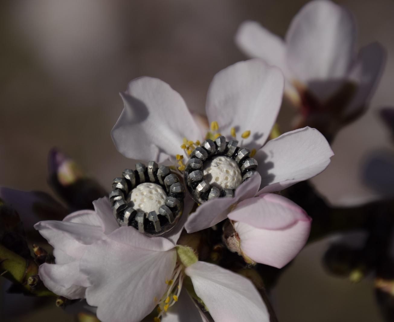 Pendientes de boton hechos con cremallera y acero.