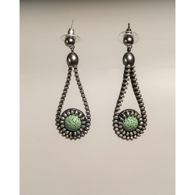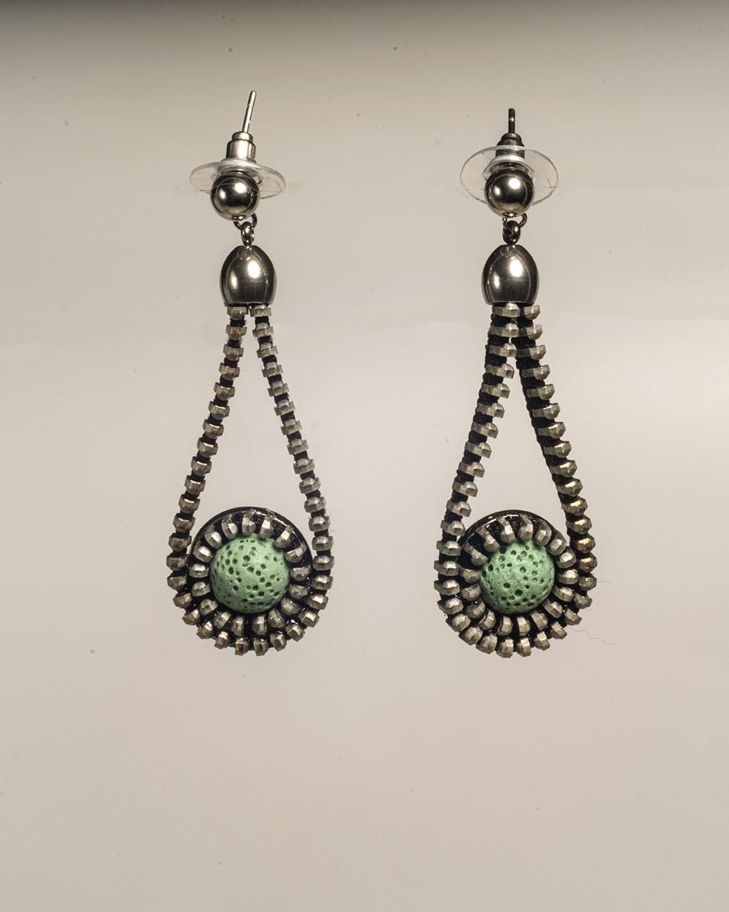 Pendientes eleborados con cremallera y piedra volcanica con forma de labrima