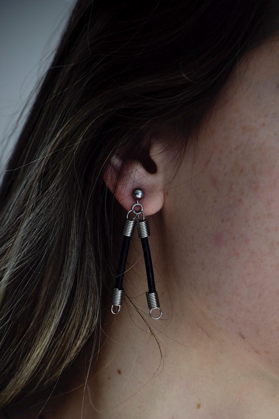 Pendientes largos,pendientes originales,pendientes de muelles y cuero.