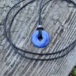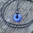 Colgante de lapislázuli tipo donut, con cinta de cuero y abalorios de plata.