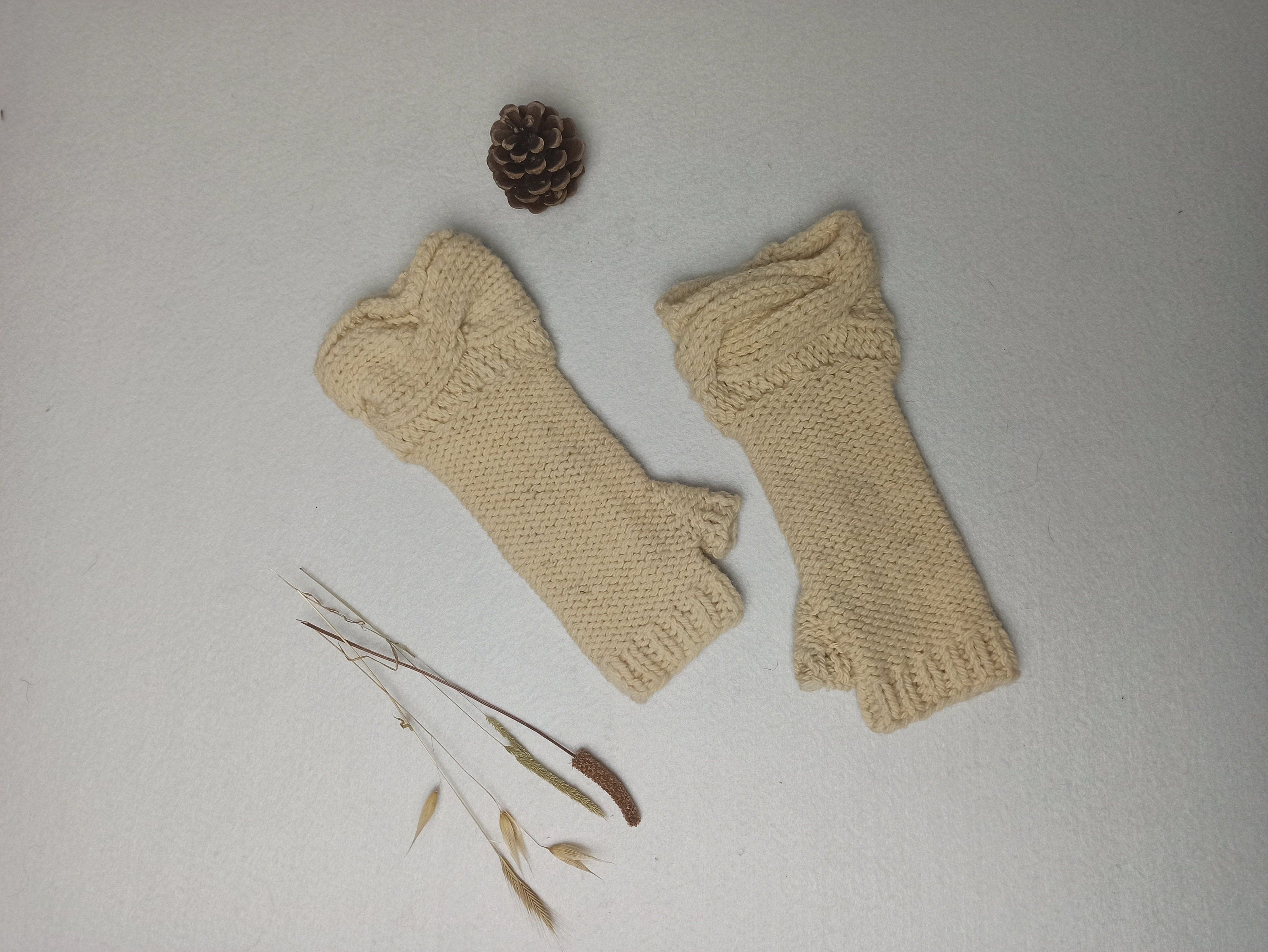 Mitones largo acabados en trenza 100% lana natural de Mallorca