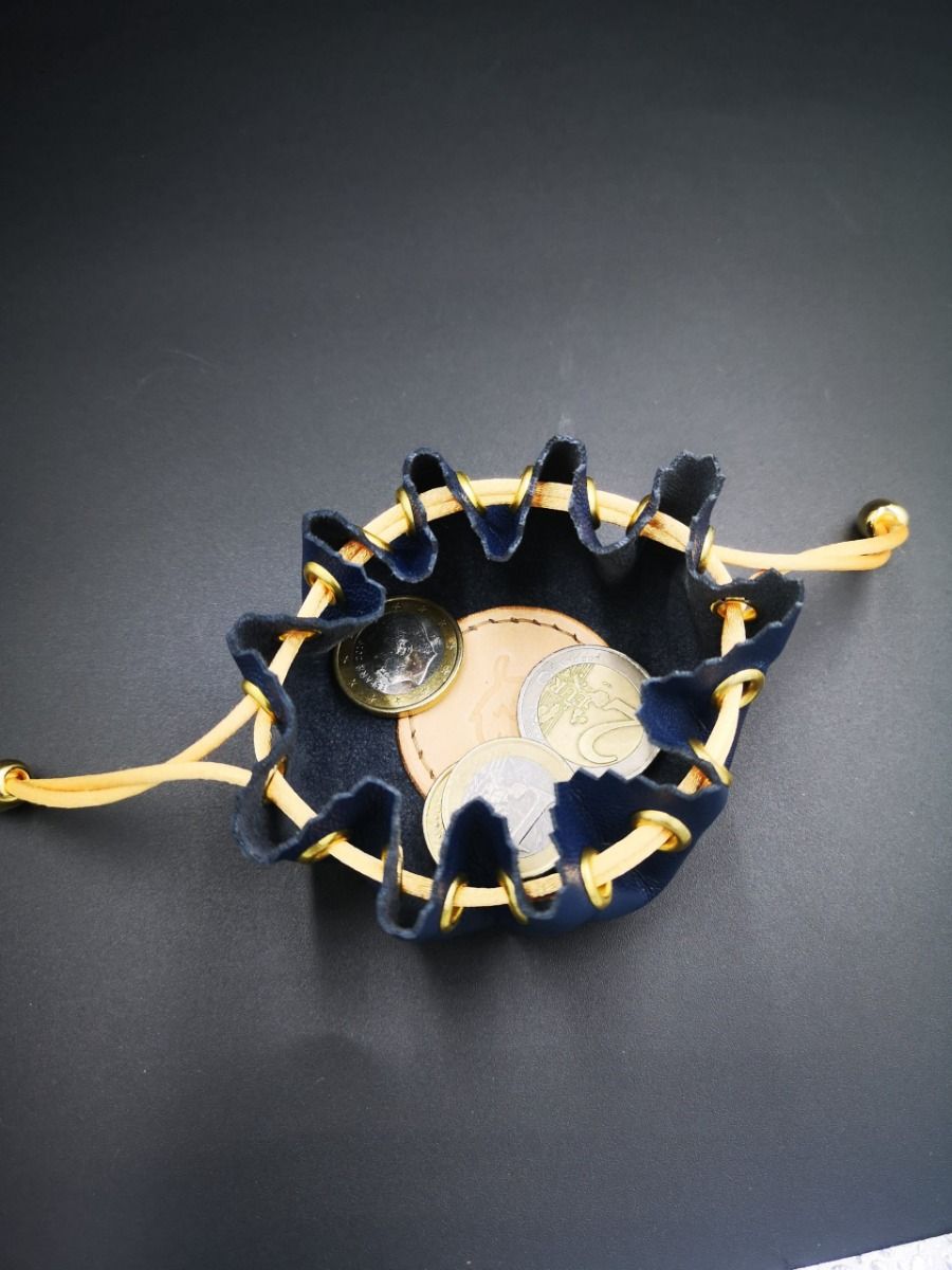 Monederos de piel de vacuno y serraje y piel de cabra elaborados de manera artesanal. De varios colores. Posibilidad de personalización.