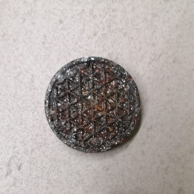Esta compuesta de virutas de cobre y aluminio, un trozo de cuarzo y virutas de shungita