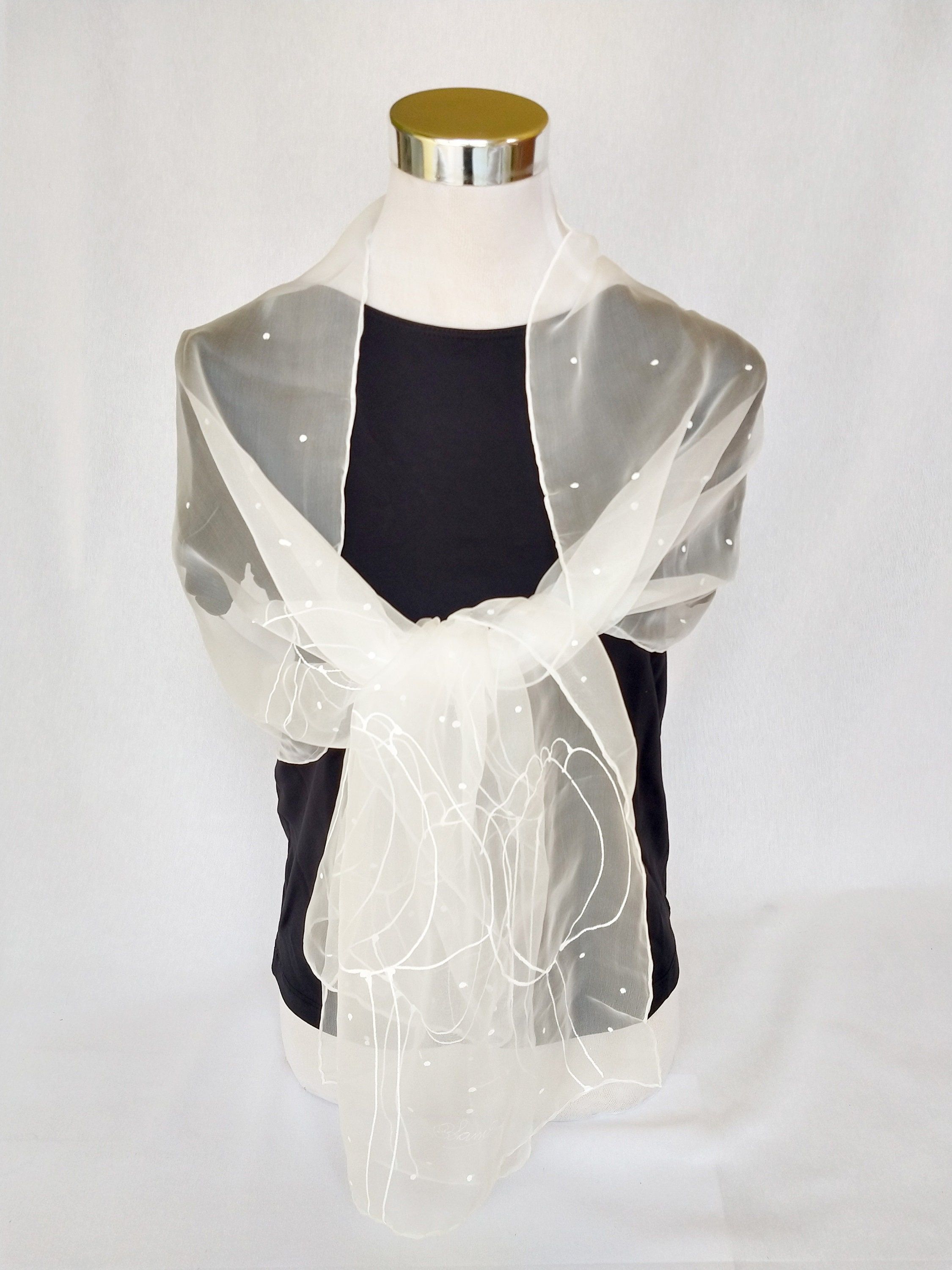 Pañuelo de seda de gasa con diseño floral, chal de seda blanco pintado a mano, pañuelo de seda con flores, chal de boda de verano,