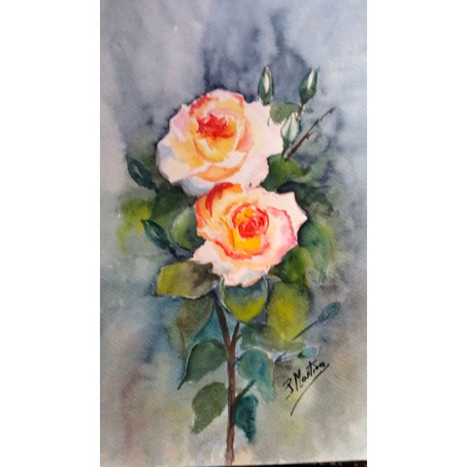 Acuarela pintada del natural, rosas con unos colores increíblemente bonitos que van desde un naranja claro hasta el rojo más intenso. No pude evitar coger los pinceles y pintarlas.