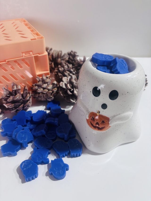 Escalofriantes melts de mini fantasmas con aroma a "dulces de canela y miel" ideal para crear un ambiente acogedor y relajante.