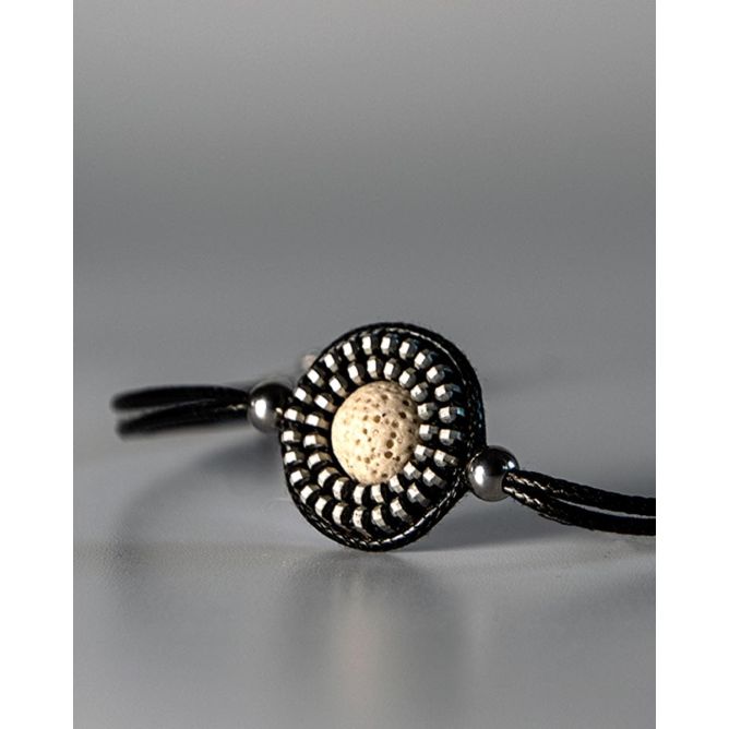 Pulsera hecha con cremallera y lava volcanica con cierre de acero